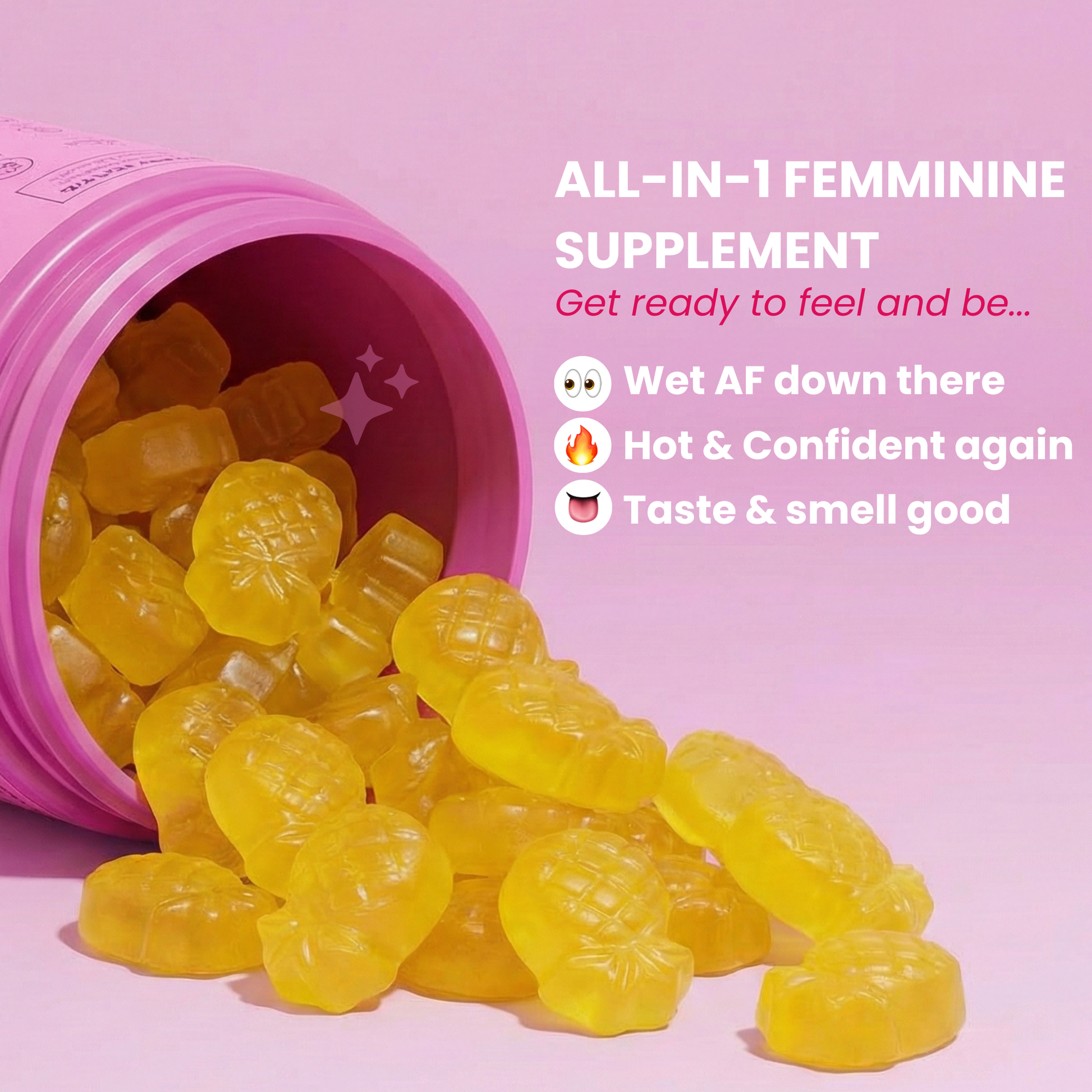 Feminine Balance Gummies are infused with pineapple extract, working naturally to: